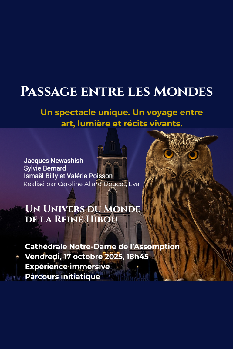 Une œuvre audiovisuelle immersive présentée en projection grand format. La création combine images générées par processus numérique issues du Monde de la Reine Hibou, conception artistique originale et composition sonore pour offrir un récit symbolique vivant.
